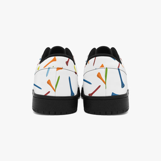 Low-Top Leather Sports Sneakers - Black Sole